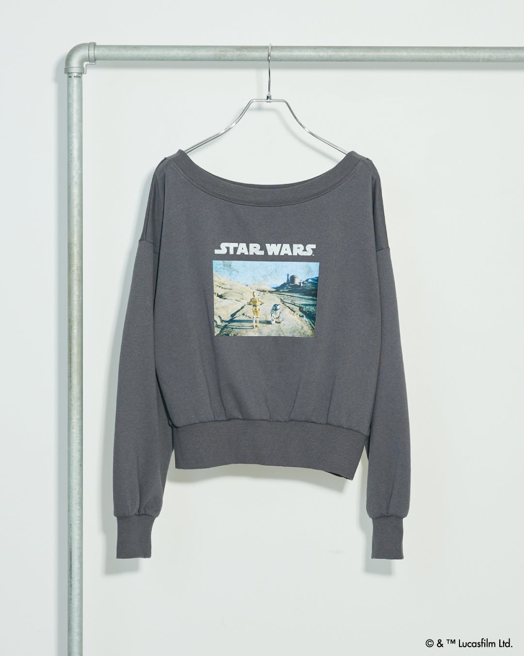 デイリー使いにぴったりのスウェットプルオーバーは3型ラインアップ。フロントにタイトルロゴを配したスウェットには、『スター・ウォーズ』らしいメタルプリントを採用。首元や裾まわりはカットオフ風に、袖はレイヤード風に仕上げ、リメイクしたようなアクセントを加えました。また、「R2-D2」と「C-3PO」が並んで歩く姿や、作品の主要キャラクターをあしらったグラフィックデザインもご用意。