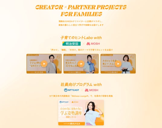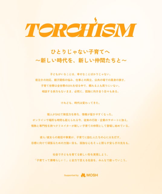 MOSH株式会社(本社:東京都渋谷区、代表取締役社長:籔和弥)は、子育て領域のトップクリエイターを特集し、SNSを通じた新しい育児の連帯を提唱する企画を展開いたします。