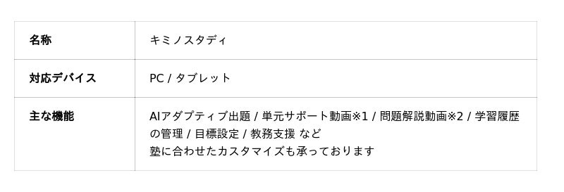 株式会社 学研ホールディングス(東京・品川/代表取締役社長:宮原博昭)のグループ会社、株式会社文理(東京・品川/代表取締役社長:荻原俊平)は、2025年12月1日より、AIアダプティブ機能を搭載した学習システム「キミノスタディ(略称:キミスタ)」の提供を開始いたしました。