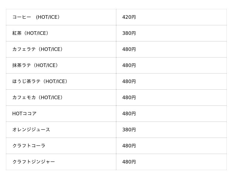 ドリンク各種 (税込価格)
