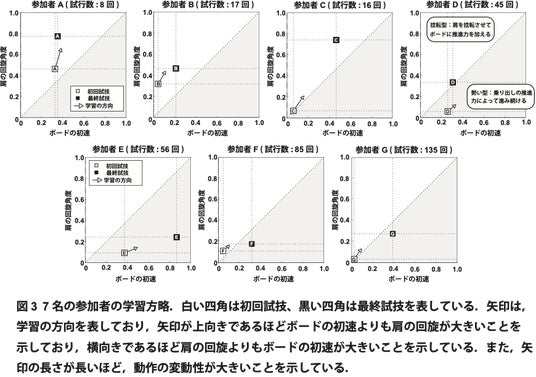 この研究は、従来の小さな動作(ジャグリングや書字など)を対象とした研究を超えて、全身を使う運動における学習過程を詳細に明らかにした点で新規性があります。特に「学習初期の方略選択」「動作の変動性(試行錯誤の幅)」が習得速度に強く影響することを示した点から、スポーツはもちろん、学校教育やリハビリテーションなど、さまざまな学習・指導場面への応用可能性が見込まれます。