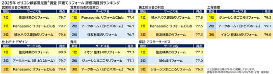 『リフォーム』総合ランキング(2025年 オリコン顧客満足度(R)調査)