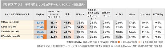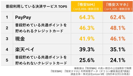 『格安SIM』『格安スマホ』普段利用している決済サービス TOP5