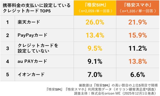 『格安SIM』『格安スマホ』ともに「楽天カード」が最多 「PayPayカード」が続く