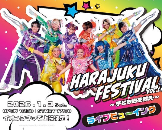 また、イオンエンターテイメント株式会社(本社:東京都港区)が運営する全国のイオンシネマでは、『Harajuku Festival Vol.1 ~子ども心を救え~』ライブビューイングを2026年1月3日(土)に上映いたします。