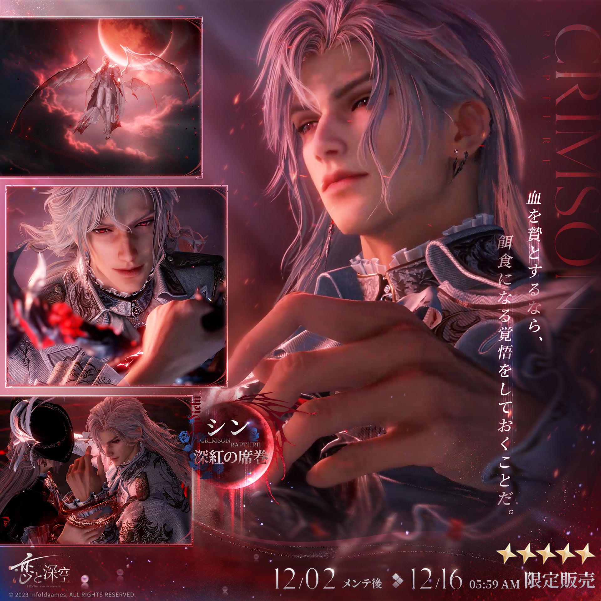 また、同日より開催されるイベント「血狩りの饗宴」では、スペシャルストーリーをお楽しみいただけるほか、限定の日位星4セット思念や「深空願い券・限定×10」などの豪華報酬も無料で獲得できます。