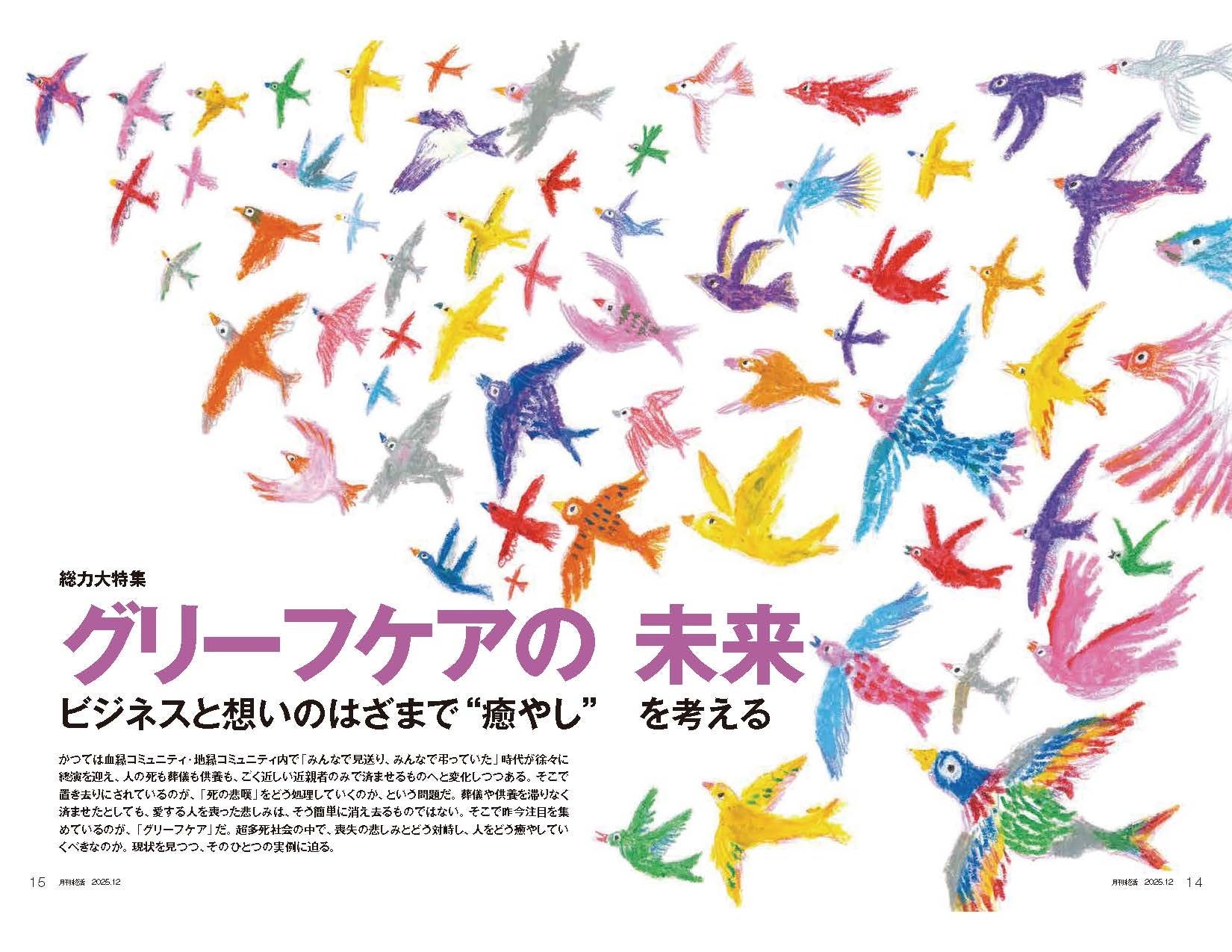 「グリーフケアの未来~ビジネスと想いのはざまで“癒やし” を考える~」と題した総力特集を中心に、供養・葬送の現状の課題と未来への展望をさまざまな視点から掘り下げる1冊となりました。