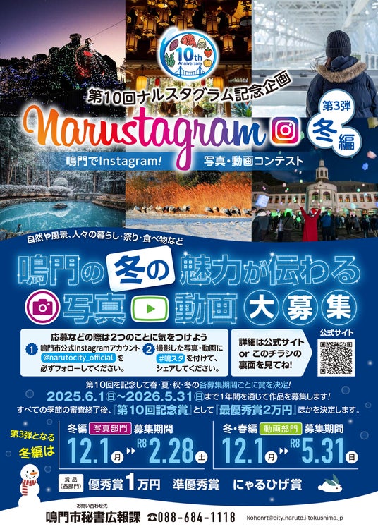 鳴門市の魅力を広く発信するイメージアップ事業の一環として、Instagram(インスタグラム)を活用した写真・動画コンテスト「Narustagram(ナルスタグラム)」を開催します。