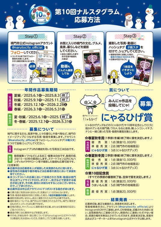 詳しくは市公式ウェブサイトをご覧ください↓https://www.city.naruto.tokushima.jp/promotion/narustagram/