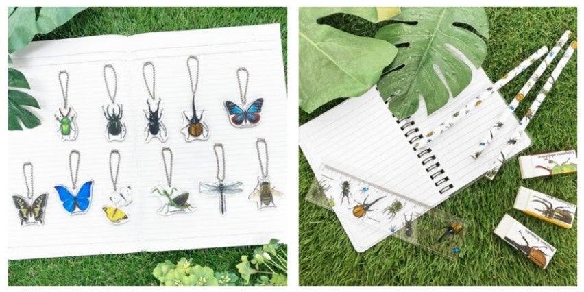 昆虫モチーフのステーショナリー、図鑑、クラフトキット、絵本などを幅広く展開。子どもだけでなく、昆虫好きの大人も楽しめるラインアップを揃えます。