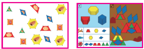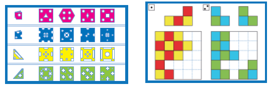 お子さまが取り組みやすいパターンブロックを利用。楽しみながら、将来学習する算数の基礎を強化するプログラムです。