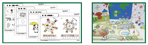 「考える遊び」を通じて記号(おと・いろ・かず)・図形(かたち・空間)・概念(ことば・ことばの意味)を学び、バランスのよい脳の成長を促す