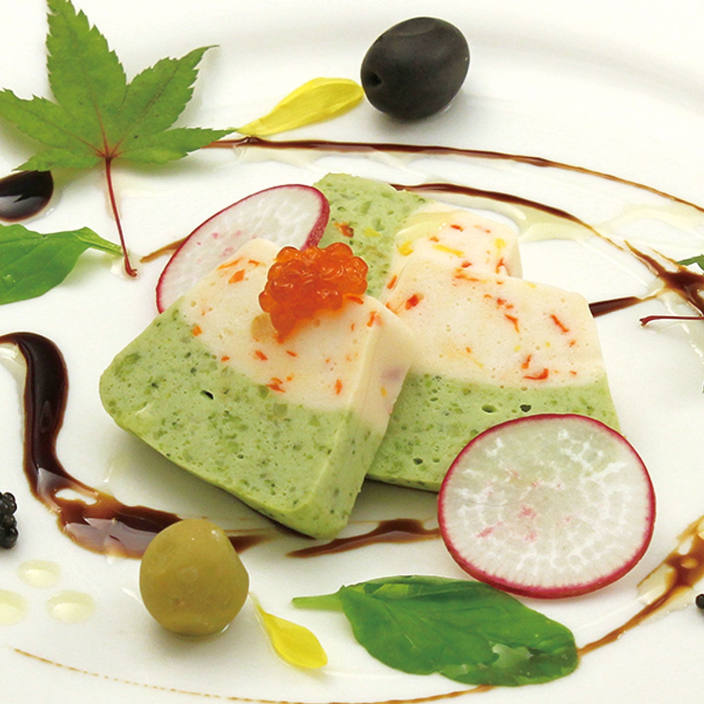 お正月らしく、市松模様としております。オレンジソース等フルーツソースとの相性も良いです。