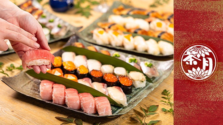 老舗寿司屋が贈る茶月のスペシャルプラン。人気の寿司ネタに加えて、鰻やいくら、つぶ貝など、厳選したネタでにぎる寿司をたっぷり味わえるだけでなく、インパクト抜群の大きなスペアリブBBQなど、自慢の逸品もお楽しみいただけます。