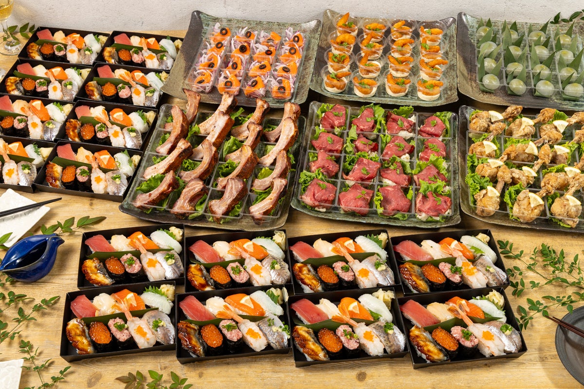 今回ご用意したのは、「本格寿司」と「和洋折衷オードブル」という、豪華でユニークな組み合わせを、リーズナブルな価格ながら、ボリュームも味もご満足いただけるプランです。独自の仕入れ力と老舗ならではの経験と技を織り込み、どんなシーンにも柔軟に対応できるプランを考案しました。パーティーシーンを盛り上げる寿司と和洋折衷オードブルをお楽しみください。