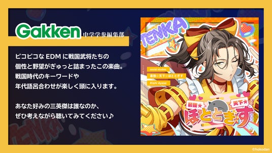 株式会社Gakken(以下Gakken)監修の『補講男子』キャラクターソングシリーズ ~参考歌 Vol.2~ 第5弾の『最強☆天下☆ほととぎす / 貴志礼世』が12月1日(月)にリリース!