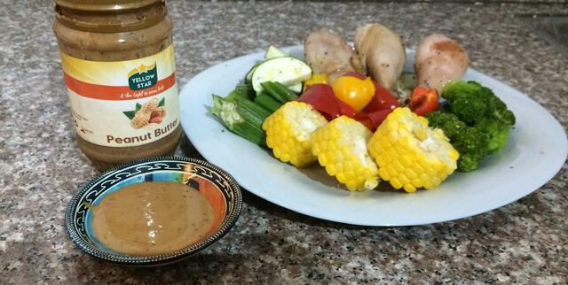 野菜やチキンをじっくり焼いている間に、味の決め手となる、万能ピーナッツソースをつくります。