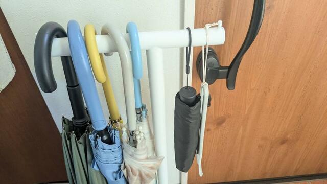 わが家は濡れて持ち帰った傘専用の場所にしていますが、家にある傘を全部かけてもいいと思います。