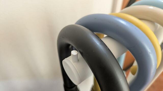 バーの端には傘がずり落ちないようにストッパーが付いています。ギリギリまでかけることができて、見た目より収納力が優秀!