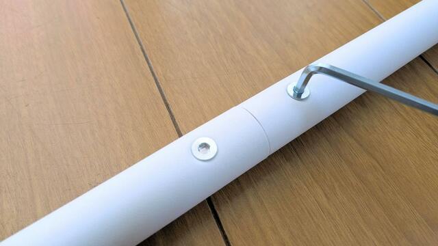 作業は同封の六角レンチですべてできます。まず、2本のパイプを繋ぎます。