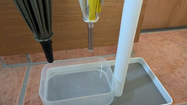 受け皿だけは外せないので、傘を干す時に傘立ても外に出して自然乾燥させてしまうのが一番早いです。