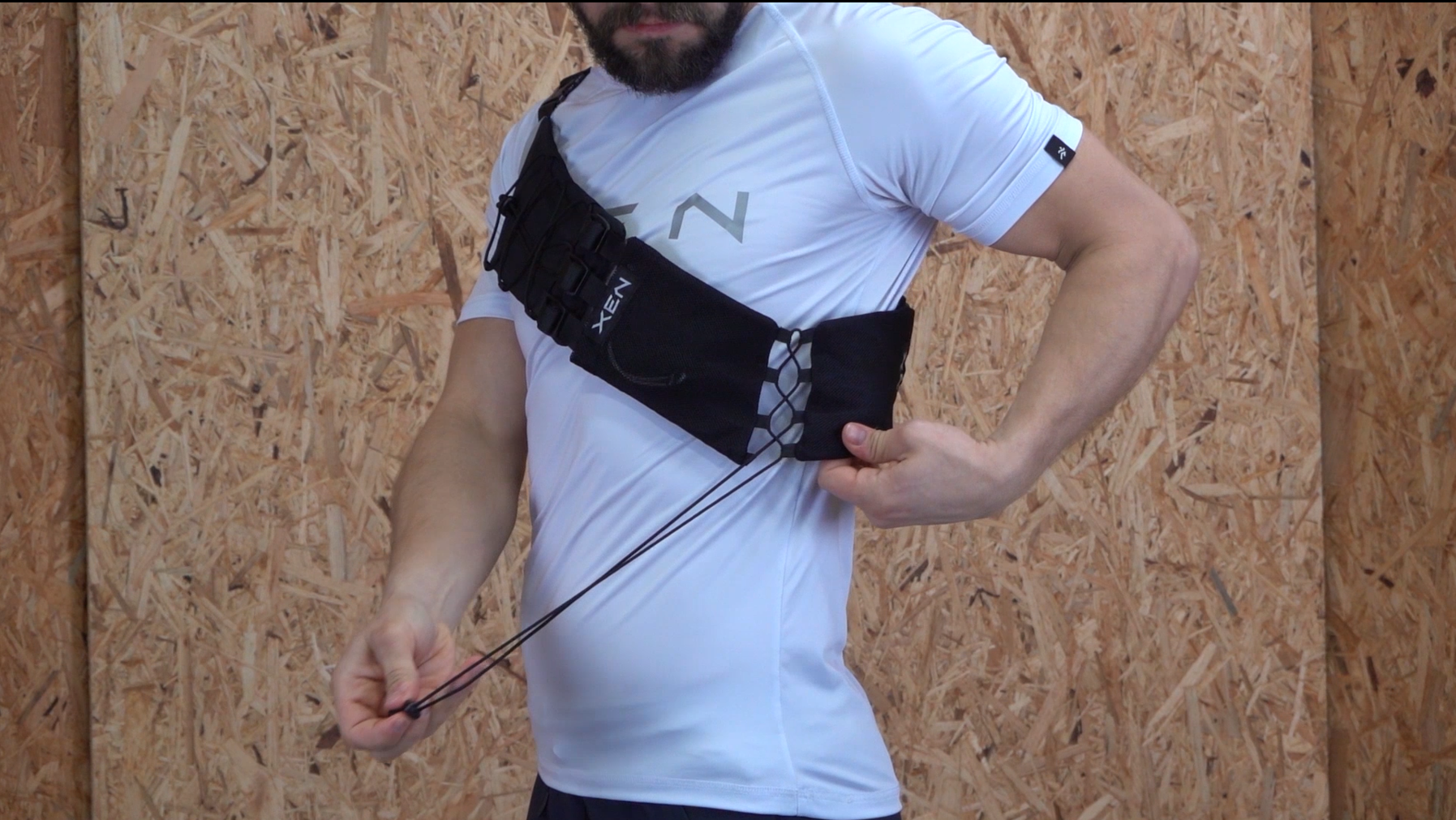 従来のバッグは走行時に上下左右へ揺れてしまい、不快感やストレスの原因となっていました。XEN Orbiterは、チェコで開発された**特許取得済の「3点固定システム」**により、ランニング中でもバッグが体にしっかりフィットし、揺れを最小限に抑えます。● 揺れないを可能にした3つのポイント