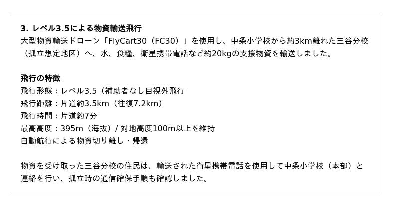 ~レベル3.5物資輸送、3km先の孤立集落との双方向通信に成功~