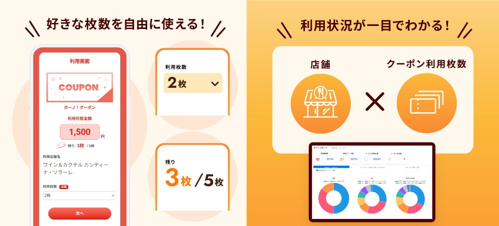 利用店舗と枚数を自由に選べるクーポンで使いやすさがさらにアップ