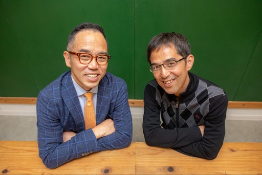 写真左:花まるグループ代表 高濱、右:顧問就任の井本氏