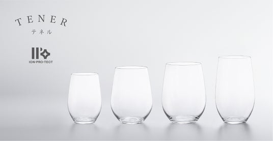 「TENER(テネル)」は、薄く・軽く・丈夫という特長から家庭用・業務用の双方で支持されるロングセラーシリーズで、シリーズ名は製品の“薄さ・軽さ”を表現する“繊細”という意味のラテン語に由来しています。2006年の発売から20周年を目前に控えた今年、日本酒、白ワイン、赤ワイン、ハイボールの用途を想定した4種類のワインタンブラー型アイテムが新たに加わりました。