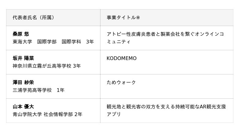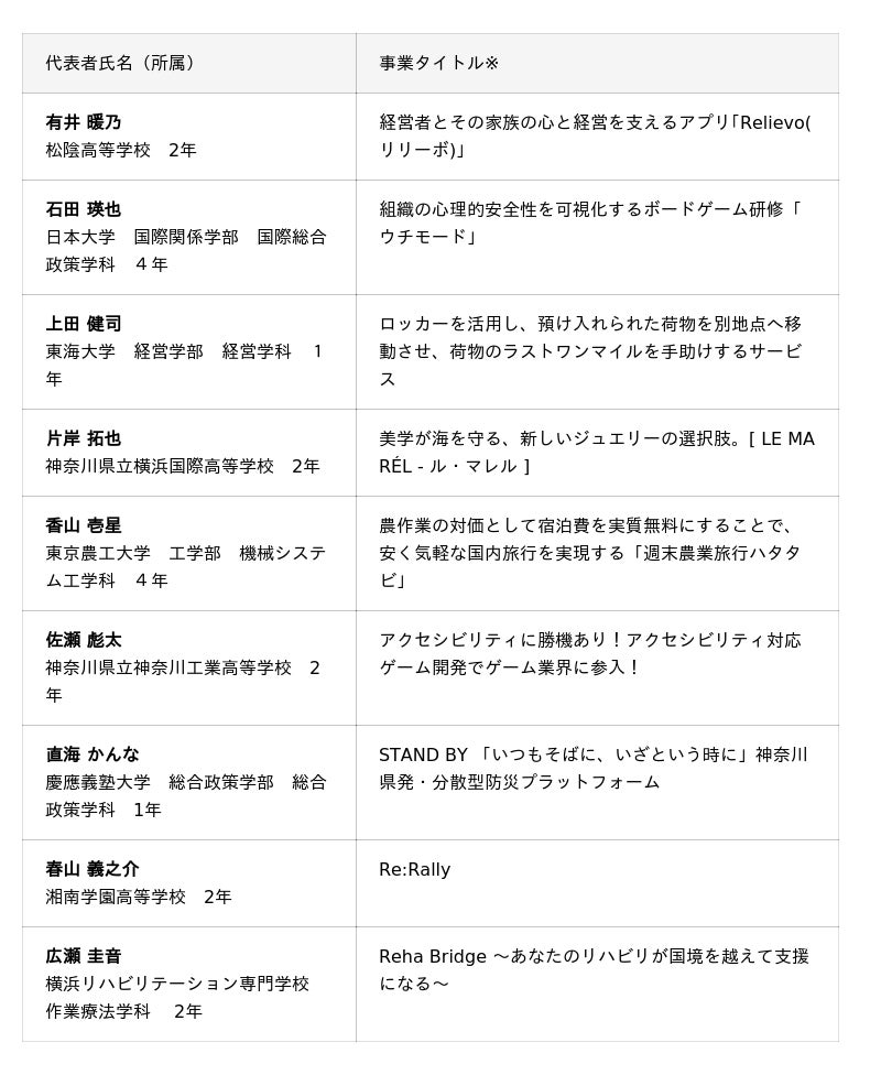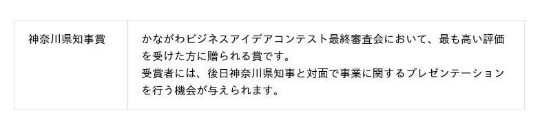 神奈川県知事賞の他、「優秀賞」「特別賞」など、ファイナリストに対して様々な賞が贈られます。