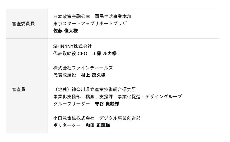 神奈川県に活動の拠点を置く、様々な企業の方を審査員に迎えます。多角的な視点からファイナリストのプレゼンテーションを審査いただきます。