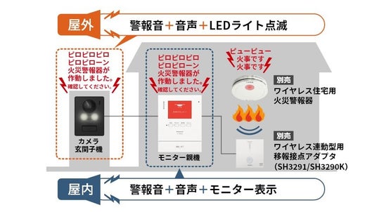 本製品は、宅配業者に対し置き配依頼を自動で円滑に行う「代理応答機能(※1)」や、火災警報器と連動し宅内外に発報する「外にも火災警報」機能などを搭載。これらの機能に加え、優れたデザイン性と基本性能の向上を両立させたエントリーモデルのインターホンです。