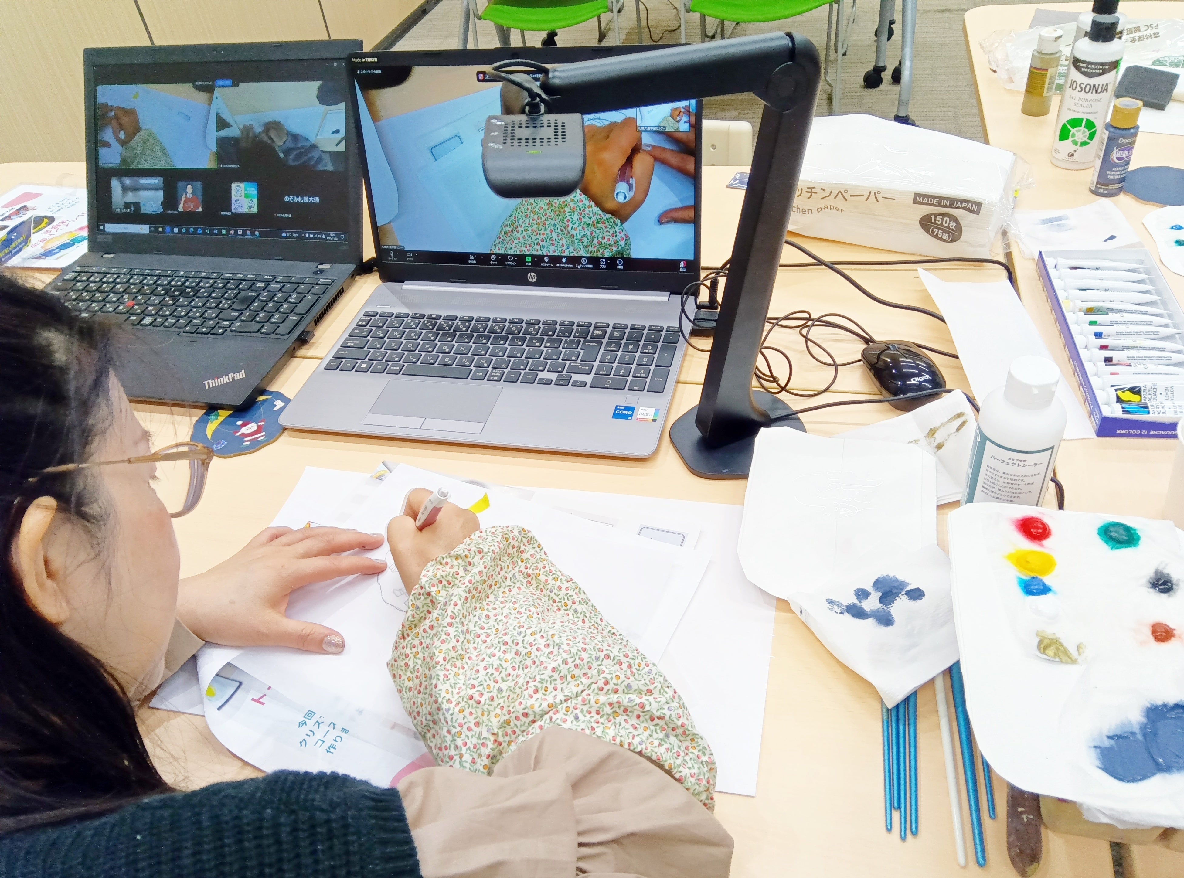 生徒と講師はリアルタイムで繋がり、生徒の制作状況もカメラを通じて共有されます。