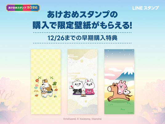LINEヤフー株式会社(以下、LINEヤフー)は、年末年始のコミュニケーションをLINEスタンプで気軽に楽しめる「あけおめスタンプ2026」の販売を本日より順次開始します。さらに、あけおめスタンプの購入者限定で、特別なおみくじや壁紙がもらえる特典も実施します。