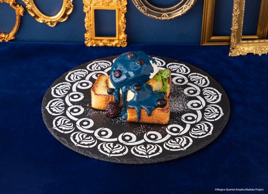 メニューは、魔法少女たちをイメージしたサンドウィッチやドーナツ、ドリンク、「ワルプルギスの夜」をイメージしたフレンチトースト、そしてキュゥべえの顔のパスタなど、フォトジェニックで工夫を凝らしたメニューをご用意いたしました。