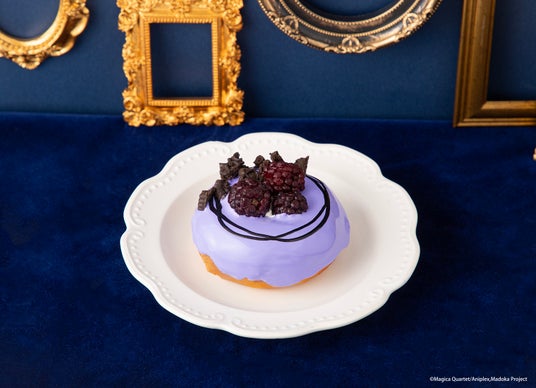 ほむらをイメージした紫色のドーナツ。