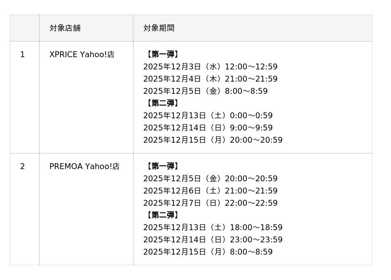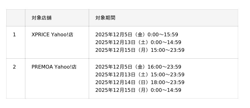 対象店舗:XPRICE Yahoo!店、PREMOA Yahoo!店
