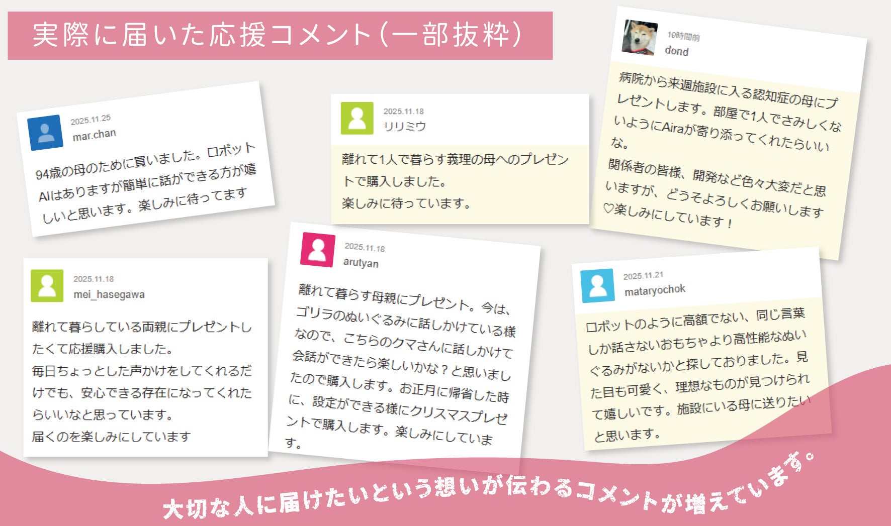 実際に届いた応援コメントの抜粋です。