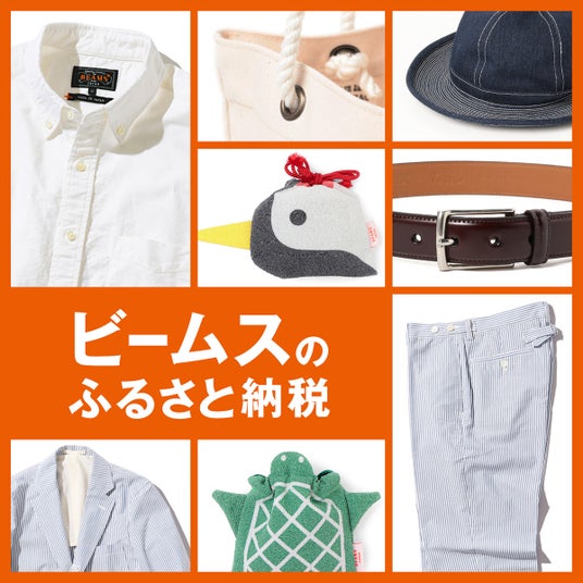 BEAMS PLUSのボタンダウンシャツや革ベルトなどロングセラーに加え、BEAMS JAPANの店舗限定商品がふるさと納税返礼品としてお選びいただけます