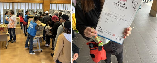 市原更科会場では、証明書の発行に加えお菓子とお米のプレゼントがありました。他イベントと同時開催をしたことで、参加増加に大きな追い風となりました。また、参加特典等がある会場では、プレゼントをもらった親子連れから喜びの声もいただきました。