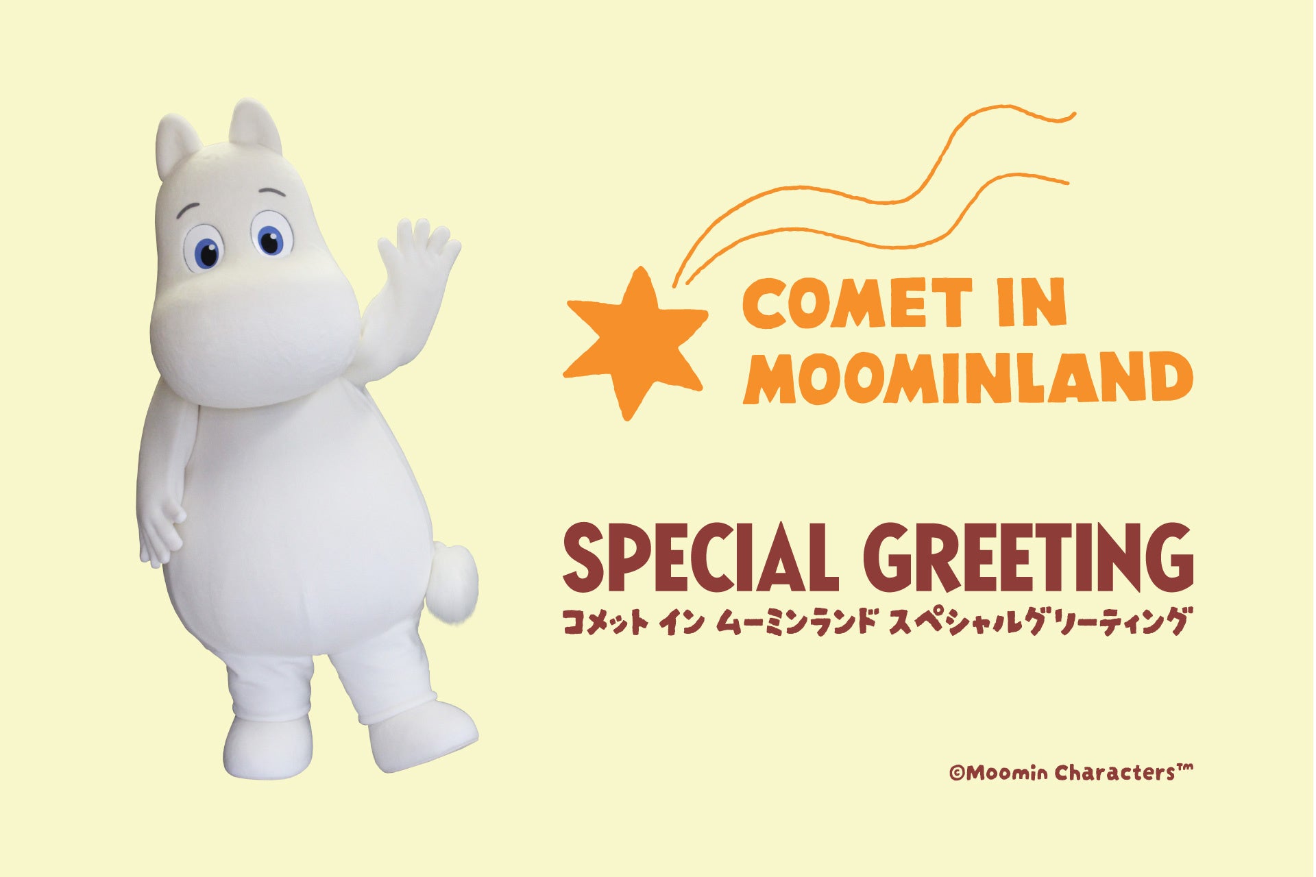 ムーミントロールが「コメット インムーミンランド」の物語の世界をイメージした装いでムーミンスポットへ登場するグリーティングイベントを開催します。2026年限定の特別なムーミンと一緒に写真撮影をして楽しみましょう。