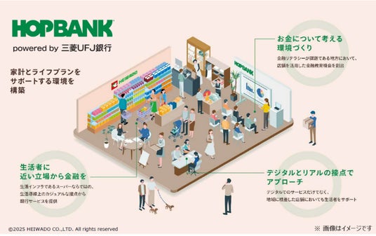 株式会社平和堂(本社:滋賀県彦根市、代表取締役社長執行役員CEO:平松正嗣、以下「平和堂」)と、株式会社三菱UFJ銀行(本社:東京都千代田区、取締役頭取執行役員:半沢淳一、以下「三菱UFJ銀行」)は、12月1日(月)より、スーパーマーケット業界初(※1)となる個人向け銀行サービス「HOPBANK powered by 三菱UFJ銀行(以下、HOPBANK)」の提供を開始しました。