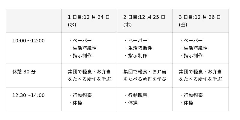 ※年末年始休講日:12 月 29 日~1 月 4 日(12 月 1 日、1 月 5 日は研修日のため受講はできません)