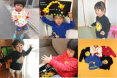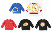 「Sassy」絵本の特徴である「にっこり笑顔」が印象的なデザインのトレーナーは、男女問わず着られるデザインで、全5種類。どのデザインも、着脱しやすいよう、全てのサイズに肩スナップがついています。