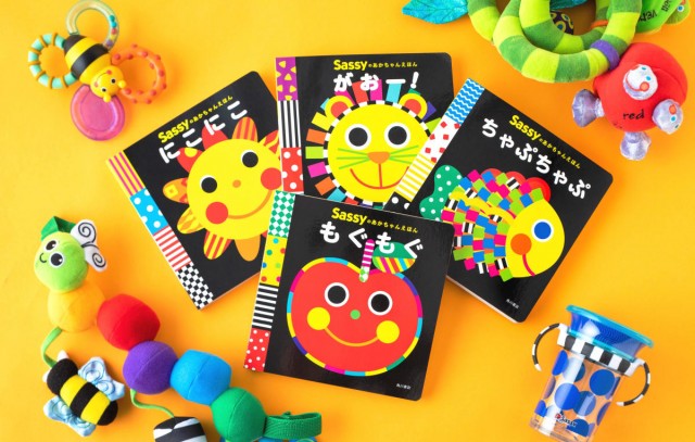 あかちゃんの発達心理学を研究し、「色」や「形」にこだわって開発された知育玩具ブランド。そのキュートなグラフィックを生かした絵本シリーズ「Sassyのあかちゃんえほん」は、累計発行部数35万部を超える大人気の絵本シリーズです。