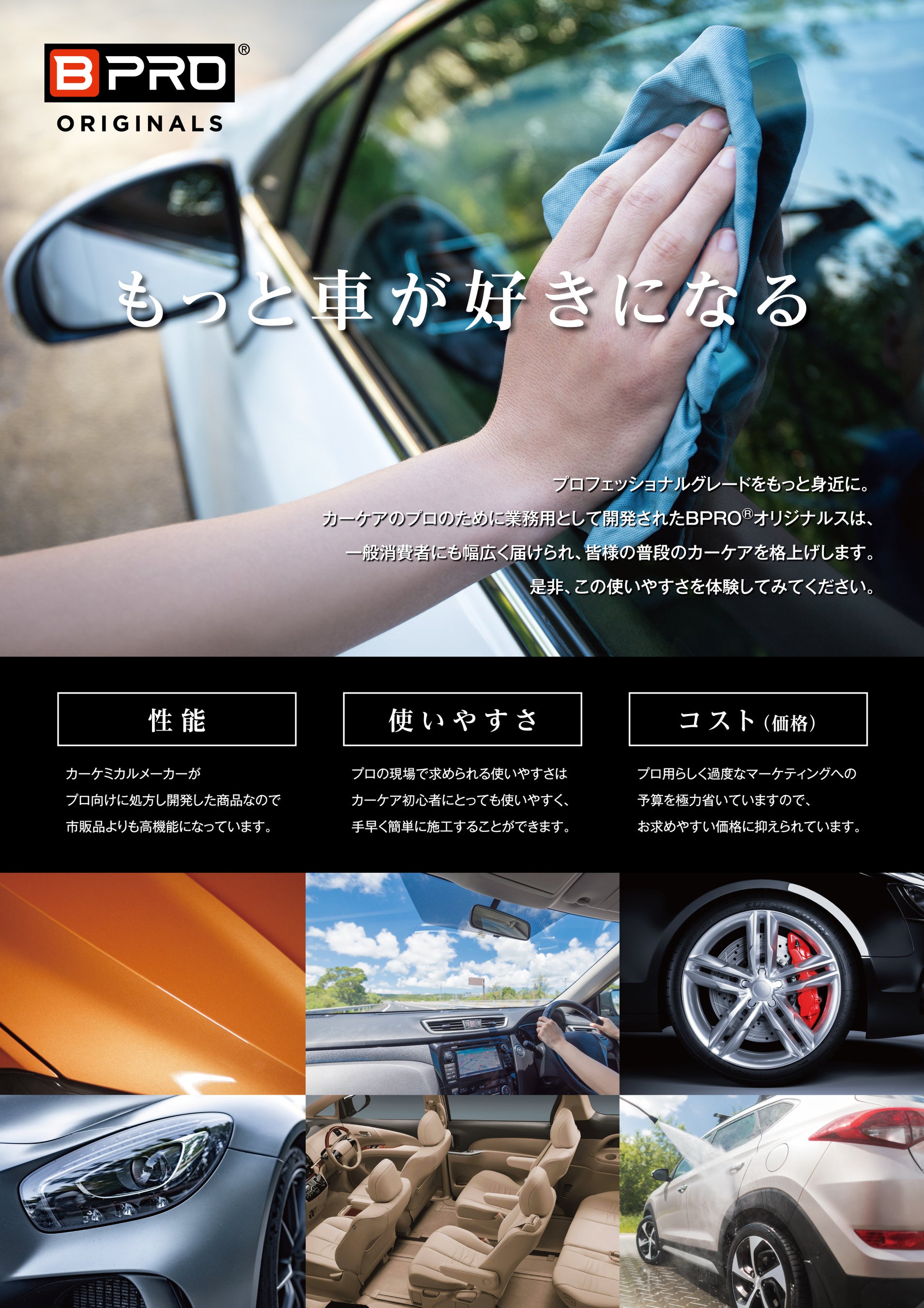 BPROは、カーケミカルメーカーが「性能」「使いやすさ」「コストパフォーマンス」に重点を置いて開発したプロユースのためのカーケアブランドです 。