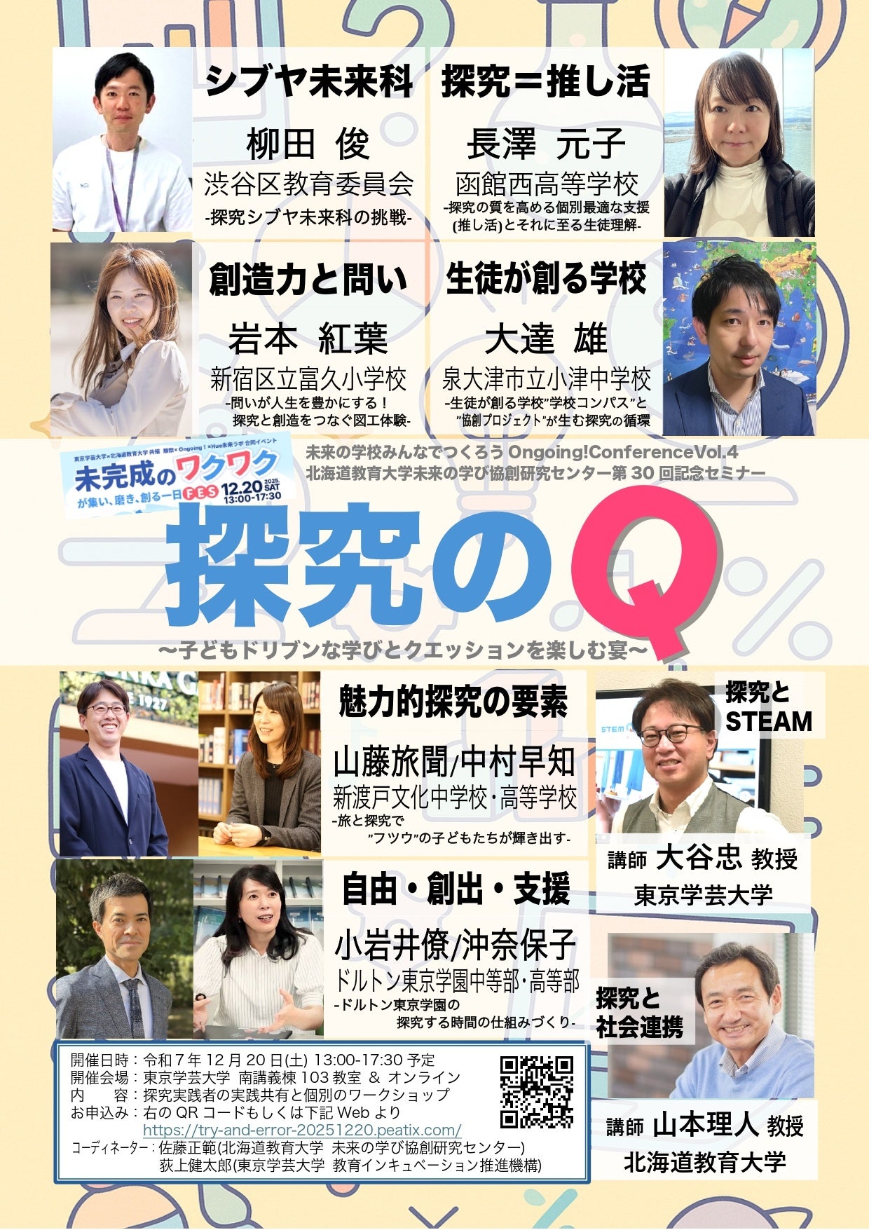 ・ 主催:東京学芸大学 教育インキュベーション推進機構、北海道教育大学未来の学び協創研究センター