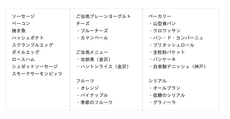 - ANAクラウンプラザ特製オムレツ:ブランド卵を使用し、4種のホテル自家製特製ソースで仕上げる王道メニュー