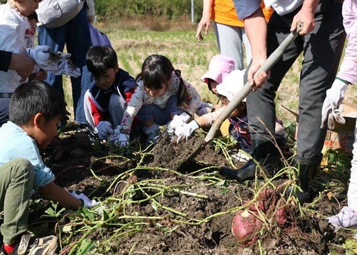 病院に隣接する耕作放棄地を活用した医農連携プロジェクト「ふくふくファーム」では、6月よりお米作りにも挑戦し、6月は手で稲を植える田植え体験、10月はお米の収穫体験などを実施してきました。今回は、病院職員の看護師が農園長を務める畑で、芋ほり体験を実施し、土に触れながら食と健康について親子で考えるきっかけを提供。収穫したサツマイモを手にした子どもたちの笑顔があふれる、にぎやかな時間となりました。